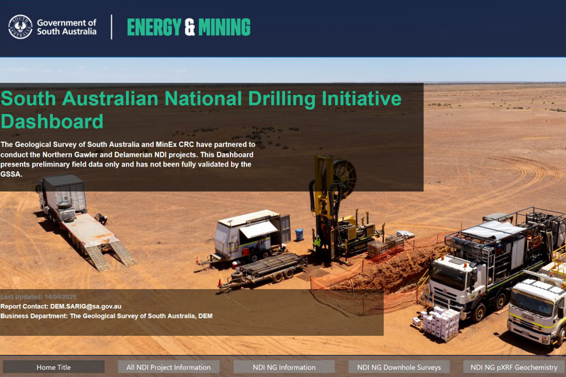DIG CT is proud to share drill hole data obtained from the Northern Gawler Coiled Tubing (CT) Drilling Program in rural South Australia. A dashboard featuring visual field and core data is now available to ALL since Geological Survey of South Australia’s and MinEx CRC‘s National Drilling Initiative Dashboard went live. The GSSA NDI Dashboard allows users to select specific drillholes to zero-in on key information including chip and core tray images, logged lithology and interpreted stratigraphy via simple menus and downloadable links to South Australian Resources Information Gateway (SARIG) Catalogue. (Hover cursor over intervals for images).